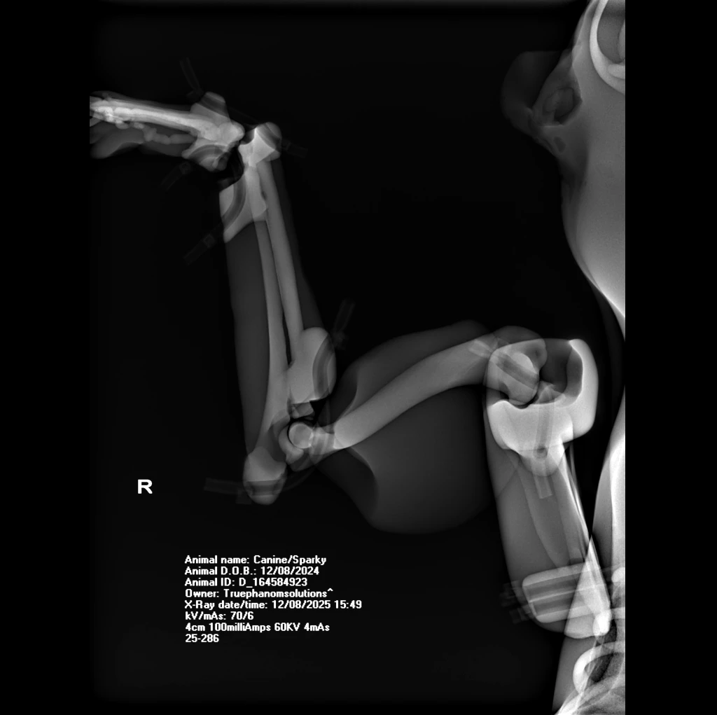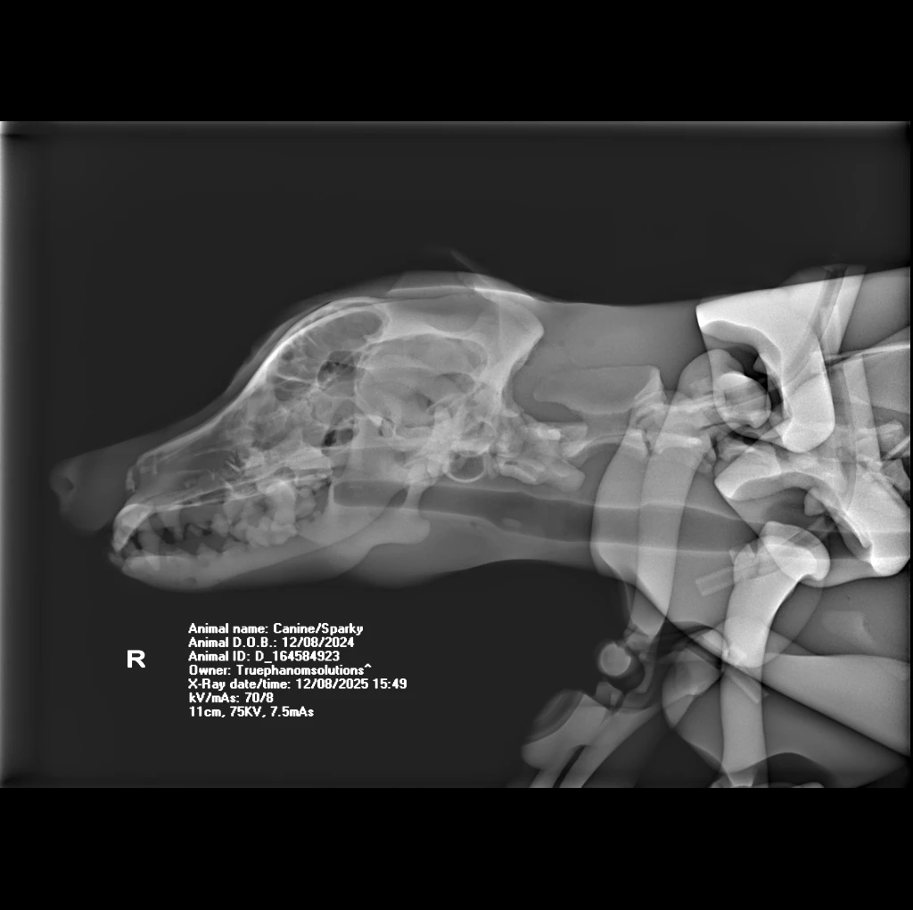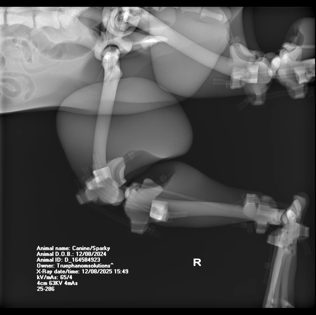 The Canine Phantom is an advanced veterinary training model derived from a real CT dataset of a male Bull MastiffRhodesian Ridgeback cross. Developed in collaboration with global veterinary institutions, this upgraded model features significant enhancements in joint articulation for realistic X-ray positioning and refined vascular detailing for procedural training.