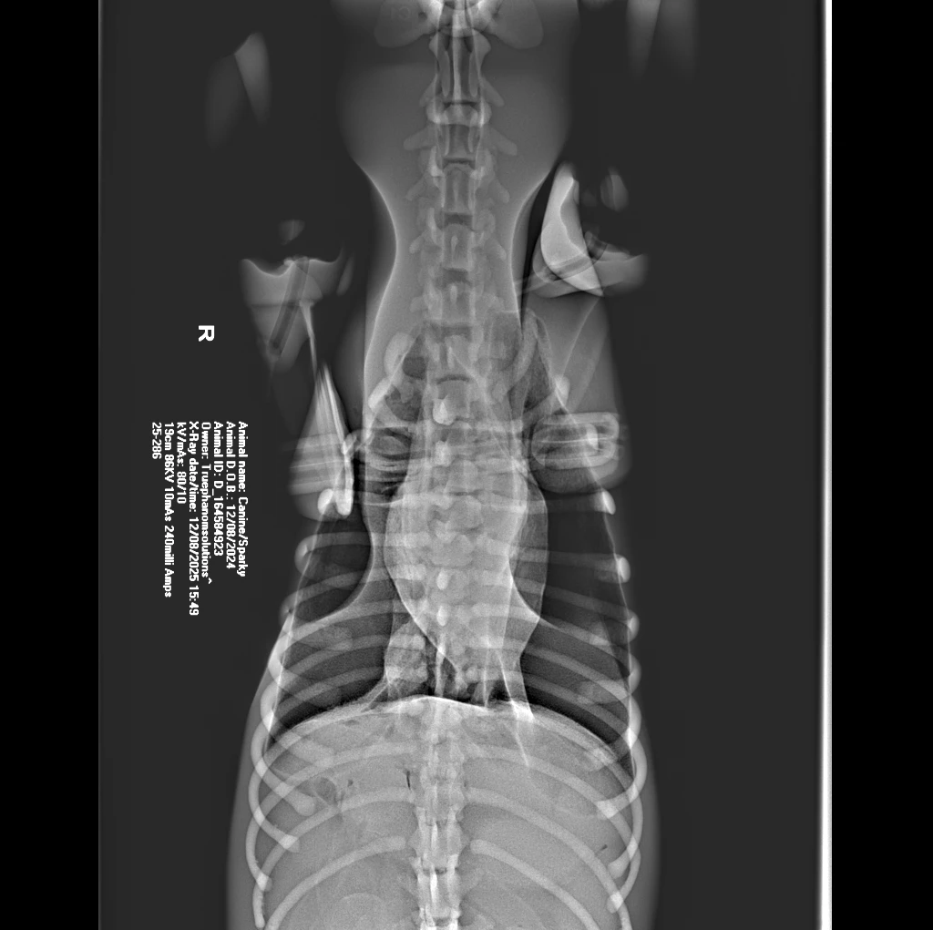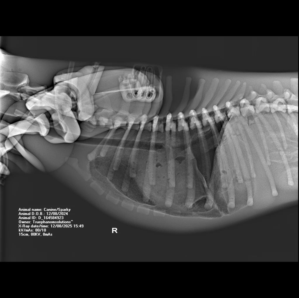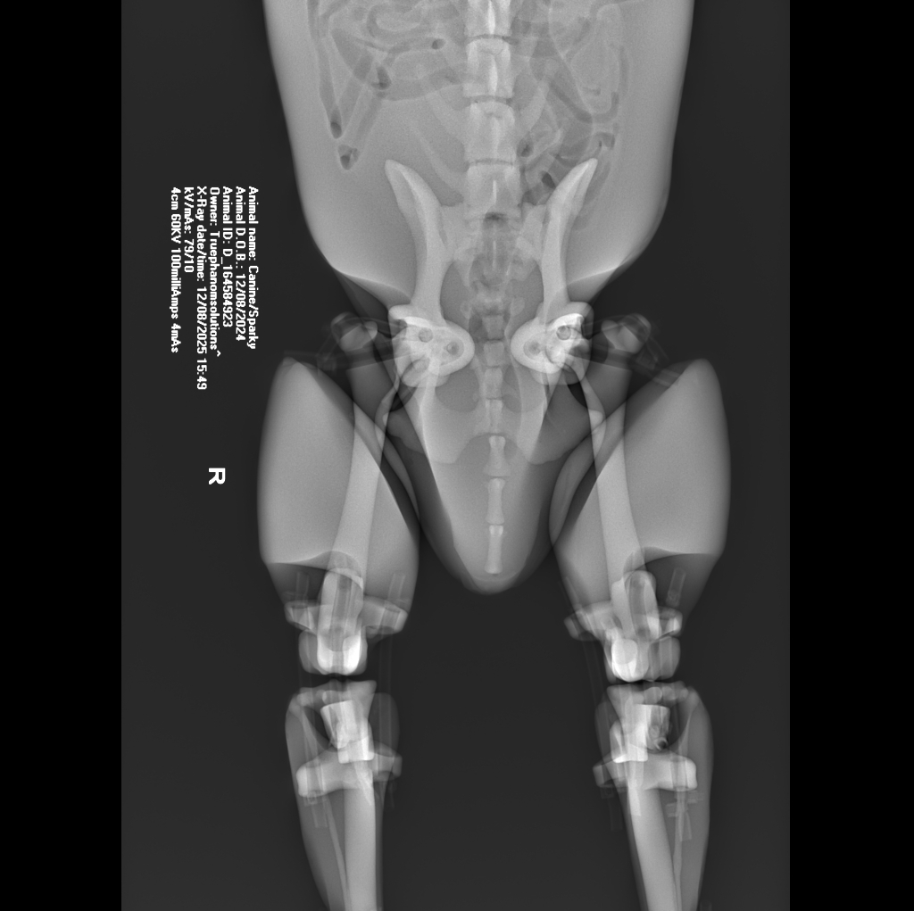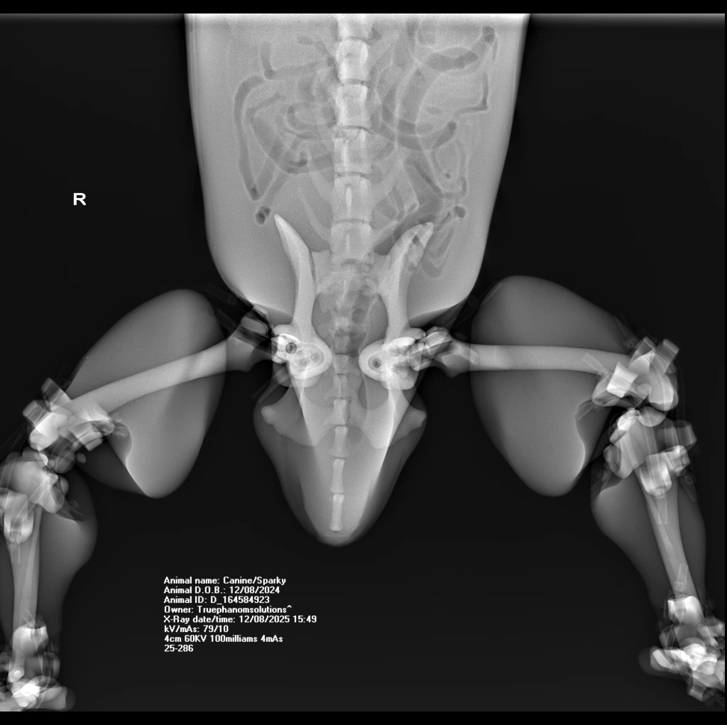 The Canine Phantom is an advanced veterinary training model derived from a real CT dataset of a male Bull MastiffRhodesian Ridgeback cross. Developed in collaboration with global veterinary institutions, this upgraded model features significant enhancements in joint articulation for realistic X-ray positioning and refined vascular detailing for procedural training.