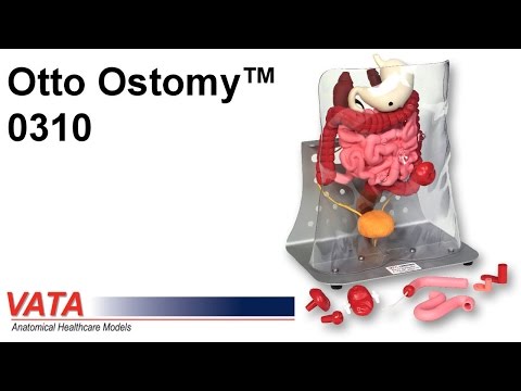 A better understanding of Ostomies!. From the Inside Out! The more healthcare providers understand ostomies, the better they will be able to educate and encourage their patients about this life-changing event. Proper teaching helps increase patients, understanding of their condition and the adjustments which may be necessary for achieving a satisfactory standard of life with their new stoma. That's why VATA, a leader in anatomical healthcare models, has created Otto Ostomy, the ultimate educational tool for nurses and patients. Pre-operative teaching allows patients and their families to begin learning about ostomies prior to surgery, at a time when they are less distracted reducing anxiety. Seeing the 3D digestive and urinary tracts and visualizing the location and function of the various organs is essential to learning, especially in those cases where cognitive processes or language may be an obstacle. Modeled from an actual patient's CT scan, Otto Ostomy will help your patients and their families become more knowledgeable about what to expect, while demonstrating how ileostomies, urostomies and colostomies function. Otto Ostomy has a clear torso shell with four openings for the insertion of stomas. The torso shell is easily removed for teaching or to facilitate in accessing and manipulating the intestines. The color coded organs displayed include: Stomach, Small intestine, Large Intestine, Rectum, Kidneys, Ureters, Bladder The large intestine, small intestine, rectum and bladder are all removable to aid in teaching procedures where these organs will be removed. The ureters can be removed from the bladder and reinserted into the ileal conduit to show how a urostomy functions. The flexible small and large intestines can be separated and attached to the backside of the stoma in the torso shell to demonstrate either an end or loop stoma. The large intestine can be separated at four different locations: Ascending colon, Transverse colon, Descending colon, Sigmoid colon Includes an anodized aluminum base, clear torso shell with four openings for stoma placement, stomach, small intestine, large intestine, rectum, kidneys, ureters, bladder, ileal conduit, small intestine loop, ileostomy and colostomy loop adapters and the following stomas: 7/8" diameter, 2" diameter, urostomy with 3" stents in place, loop with rod, loop without rod, double barrel, oval, mushroom, prolapsed, 3" diameter, granuloma, necrotic, ischemic, in-skin-fold, parastomal hernia, mucocutaneous separation, recessed, flush.